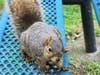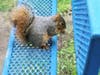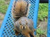 After some serious tail swishing and discernible angst over whether or not to proceed closer to the tall stranger who spoke softly and offered peanuts that were nestled in the palm of her hand, his comfort level went up and he warily hopped onto the metal park bench and eventually noshed on those nuts, then dropped to the ground where I left him a little pile in exchange for these photos.