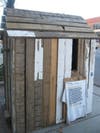 The artwork, a makeshift house created from an old porch, is outside of the gallery.