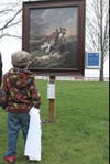 As part of the project, the DIA has brought seven high-quality reproductions of art pieces from its collection to the streets of Wyandotte. Some of the pieces hang on the sides of buildings, while others are freestanding throughout the downtown area, including the one in Bishop Park. The pieces are clustered within walking or biking distance from each other to encourage people to get out and view them all.