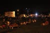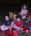 In spite of Friday's near record breaking temperature, families turn out to watch 'Cloudy with a Chance of Meatballs' as they sit under the stars at Wyandotte's summertime Flicks on Bricks.
