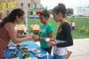 Children were invited to use some of the fresh produce from the market to create new inventions, including a pickle dog and a cucumber car.