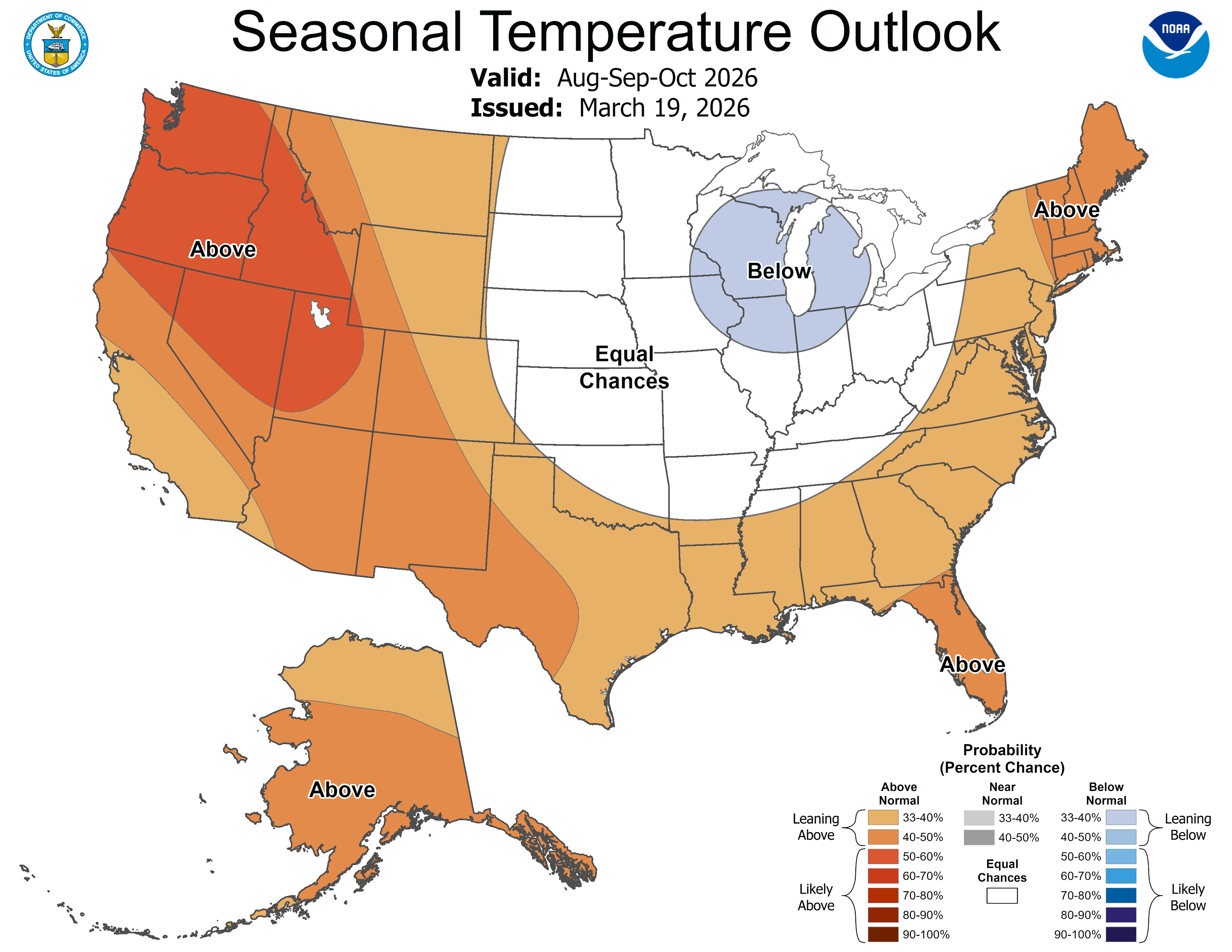 Meanwhile, NOAA predicts the state also has an equal chance of above- or below-average precipitation