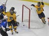 Four second-period goals helped lift top-seeded Rosemount to a 4-3 win over Woodbury on Wednesday at the Rosemount Community Center in Section 3AA play.