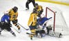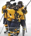 The Irish (19-5-1) got goals from Kristen Reuter, Allison Micheletti, Taylor Sampson and Sarah Tollefson in the second, and goalie Caitlin Dantzscher made 21 saves on 24 shots to pick up the win.