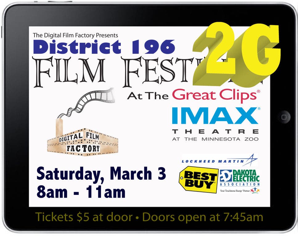The District 196 Film Fest 2G at the Great Clips IMAX Theatre. Middle school and high school student produced films. Audience will vote for their choice of best film.