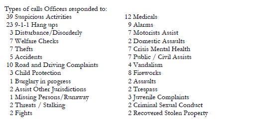 See the image below that references a few of the calls officers were dispatched to in the recent past: