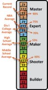 The average NBA player scores at the Expert III level, while the typical high school player is several notches lower on the scale.