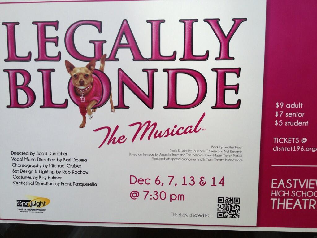 For ticket and show information on the Eastview High School production of “Legally Blonde the Musical”, visit www.district196.org/evhs. Answers to the trivia will be posted in Saturday’s blog!