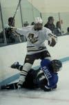 The Apple Valley boys hockey team beat Eastview High School 4-1 during the Section 3AA playoff at Apple Valley High School on Thursday. Apple Valley senior Kris Goodman led the scoring, getting a hat trick in the third period.