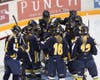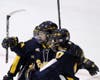 The Irish went down, 2-0, in the first period after giving up a pair of power-play goals to the Cougars, but battled back with a pair of tallies from Amanda Comstock and Allison Micheletti on the man advantage to knot the count at 2-2 late in the second period.