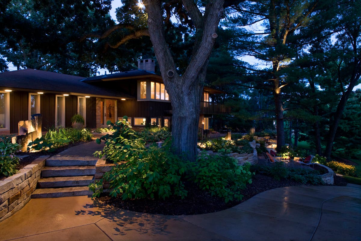 A thoughtful landscape design also takes lighting into consideration. Featured trees can set the stage for dramatic nighttime lighting using one of several lighting techniques, such as uplighting, silhouetting and moonlighting. “If the tree is big enough – at least 15 feet tall – it could be a candidate for downlighting or moonlighting,” Filloon said. The light fixture is mounted high up in the trunk and branches so it can cast light downward through the branches to create interesting shadows on the ground.