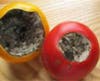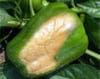 This can be a serious problem not only your tomatoes, but also for your peppers and eggplants, both of which are in the same botanical family (Solanaceae, as are potatoes). BER develops on the blossom end of the fruit, away from the stem. It first appears as a spot or water-soaked area. As it develops and enlarges, it becomes sunken and turns black and leathery-looking. And it looks a bit nasty. On peppers BER occurs at the tip of the fruit and appears as a tan or light brown area and can look like sun-scald, which is white-ish in color.