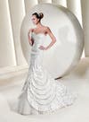 The consultants at Pricilla are also seeing a preference for form-fitting dresses with volume at the bottom. The savvy salon manager said the style shows off the bride's shape, "but the bottom of the gown adds drama, interest, texture and tradition."