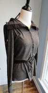 The Three Stones, Canadian-made cardigan/jacket has an interesting silk insert at back and nice button detail on the sleeve.