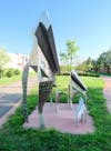 Chester's stainless steel sculpture "Gyr Family Cycle," located in the Edina Promenade, seemingly does both. The sculpture is comprised of three separate figures and illustrates the "industrialization of animals and just how we think of beings in a very abstract way, almost architectural," according to Chester.