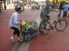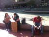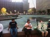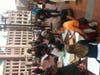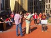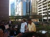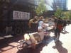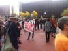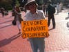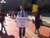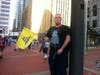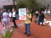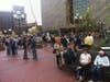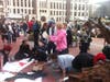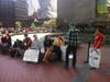 The main activity of the demonstrators was mingling, strolling and admiring each other's signs. One corner of the plaza was a sign-making workshop; on the other side was a free food stand.