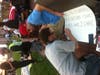 They joked about having white hair, but every age bracket had some representation on the plaza. Upon arriving, the pair began admiring and laughing at signs they saw. Soon enough, they were in the sign-making area to create their own.