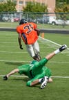Edina hosted football scrimmages on Saturday morning, Aug. 27. Area teams included Eagan, Bloomington Kennedy, Robbinsdale Cooper and Becker. Edina took reps on both sides of the ball and practiced various plays. Edina's first football game will be played on Sept. 1 at Andover.