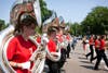 Marching bands were able to dress down for the mid-90's temps and high humidity and in some instances were allowed to wear shorts and t-shirts. Assistants weaved among the band members, squirting water into thirsty mouths and keeping people hydrated.
