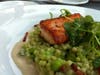The cuisine is decidedly more artisan: McCormick’s hamburger is layered with Guinness-braised short ribs, pancetta, white cheddar and thyme aioli. The chicken arrives with a country gravy, spiced to lick-the-plate perfection. Fresh salmon is served atop fresh garden peas and large couscous with bacon, parmesan sauce and truffle.