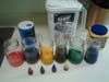 I added one cup of mixture to six bowls that already had their food coloring. Mixed well and put in jars.