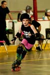 Key to awesomeness: Originally the first alternate for the traveling team, the 10-year-old Fridley girl got to go with the team to play in the interstate roller derby bout. She said she has has been going to each week for a while when she spotted someone skating really fast. This is her first year and Izzy said it’s the help of her coaches that has made her successful.