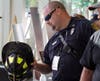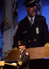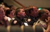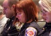 Law enforcement officers and firefighters (including from Fridley) , grieve and pay respects to those who lost their lives or loved ones in the 9/11 attacks.