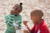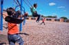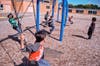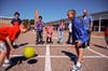 Out on the playground, first-graders reveled in the sun and didn't seem to mind they were at school instead of at home.