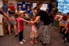 Teachers welcome back students and kindergartners part with their parents