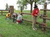 Honeywell employees had no problem chopping logs and hauling them around the historic site. The pieces were assembled into an old style wooden fence. Bob Quist, the site manager at Kelley Farm, says the fence sets the scene as visitors drive into the historic site.