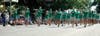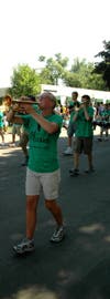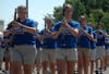 Cooper and Armstrong bands compete in the daily parade.
