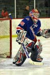 Goalie Michael Greenbeerg had a busy night for the Falcons, stopping 33 of 40 shots, but the Knights' Anders Jecha earned the shutout by stopping all nine Armstrong shots.