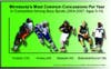 A Minnesota Department of Health study by Dr. Leslie Seymour and Jon Roesler showed that during competition between 2004 and 2007, male athletes in Minnesota annually suffered 130 concussions in football, 84 in hockey, 45 in baseball and 38 in basketball and soccer. For girls sports during the same time period, there were 16 concussion in hockey, 15 in soccer and eight in basketball.