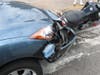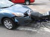 The crash threw the man from his motorcycle. Although he was not wearing a helmet, he received only minor injuries and refused transport to the hospital.