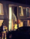 Flames initially extended up the full front of the building. They died down and appeared to disappear. However, firefighters found more flames when they cut into the building. The firefighters quickly extinguished those flames.