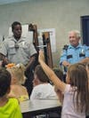 The officers stopped by the summer lunch program Tuesday at Alice Smith Elementary.