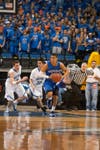 But even the Royals’ experience didn’t shield them from feeling the nerves of the state tournament, and it showed throughout the first half. Hopkins trailed three times in the first half and were twice down by five, but each time the talented Royals found a way to never let Owatonna extend its lead out of reach.