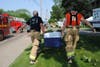 Firefighters were working in short shifts to avoid heat-related injuries, with those not in the building getting routine blood-pressure checks and taking in plenty of fluids while they rested. The Red Cross and Salvation Army were on scene to provide water and food.