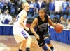 Struggling to find rhythm in its first state game since 2006, the girls basketball team looked to its defense early and often to lead the way.