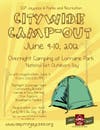 This family friendly event will take place on Sat., June 9, (registration open between 3:30 – 5:30 PM) until Sun., June 10, (tents down by 10 AM) and provides a rare opportunity to legally camp overnight in an urban city park.