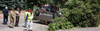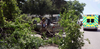 Shortly after 2 PM today (7-22-2013) at Smithtown and Echo Roads in Shorewood a westbound truck driver evidently lost control of his vehicle. After striking some trees and a cable box (see photo) the vehicle ended up on its top. The driver was treated and transported from the scene. Responding to the incident were Paramedics from the Hennepin County Medical Center (HCMC), Officers from the South Lake Minnetonka Police Department, Community Service Officers also with the South Lake Minnetonka Police Department along with a Fire/Rescue Team from the Excelsior Fire District. Neither the cause of the accident nor the identity of the driver was immediately available.