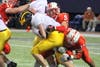 Quarterback Jackson Erdman of Rosemount was harassed the entire game by the Lakeville North defense. He completed 14 of 22 passes for 83 yards, but was sacked five times.