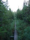 My first night on Isle Royale went well, although I woke up with a chill about 3:30 a.m. because the overnight temperature got into the high 40's. After a couple more hours of dozing, I got up about 5:30 a.m. as it started getting light. I repacked my rucksack and got a quick snack before getting on the trail a bit after 6 a.m. Other than a couple of people silently sitting on the dock, wrapped up tightly in their sleeping bags, no one else was up yet as I left Three Mile campground by heading along the shore, the water calm and still. I quickly came to a wooden trail marker and turned right for the trail up to the Greenstone Ridge.