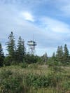 I picked up the Greenstone Ridge Trail and turned southwest as the sun started to rise over Lake Superior. There was a cooling breeze as I enjoyed great views to both side of the island, with Canada visible to the north, and the expanse of Lake Superior stretching the horizon in the south. After gaining some altitude over the next hour or so, I saw the metal tower on Mount Ojibway in the distance and reached it shortly afterwards. Climbing up to a landing on the tower (the top platform was locked shut) offered some an amazing vista and I sat down to eat a snack and take a 15-minute break.