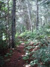 Parts of the trail were a bit overgrown and I quickly got soaked from the waist down as it had rained overnight and left the vegetation wet. Much of the trail was rocky and uneven from tree roots growing across the path; parts of the path were difficult to follow, but previous hikers had left small piles of rocks to help mark the way. The trail continued up to the island's backbone and I reached Mount Franklin at about 7am without seeing another person.