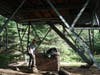 I stopped to speak with an older couple from the Northeast, John and Sharon, who were taking a break on the side of the trail and discussing plan for their four days on the island. They initially thought I was European because I was using trekking poles and we had a good laugh about it. I continued on and passed a couple of bigger groups, including one of Boy Scouts and their adult leaders. The trail continued to slowly wind down towards the southwest end of the island and parts of the trail were muddy from the earlier rain. At about 2:45pm, my feet sore and barking at me, I saw the trail marker for Windigo and shortly after reached the Washington Creek campground after about 20 miles of hiking that day. Shelter #14 offered a quiet spot with a picnic table overlooking the creek, so I set up for the night, changed into some flipflops and got some fresh water.