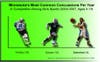 Concussions are possible in all sports, although football is the most prevalent. According to a study by Dr. Leslie Seymour and Jon Roesler at the Minnesota Department of Health, football tops the list nationally for the most concussions per season. Girls soccer, boys soccer, girls basketball and wrestling round out the top five nationally, according to the study.