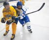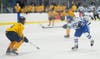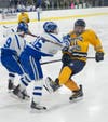 scored at the 12:28 to bring the game to a one goal deficit. This was also followed by a holding penalty on Zach Schroeder of STA to give Totino-Grace a great opportunity to yet again tie the game. However, the goalkeeping of David Zevnik and the Cadet penalty kill was successful in holding the lead. Eventually, Andrew Commers of STA sealed the game with a goal at the 15:18 mark to make the final 5-3.