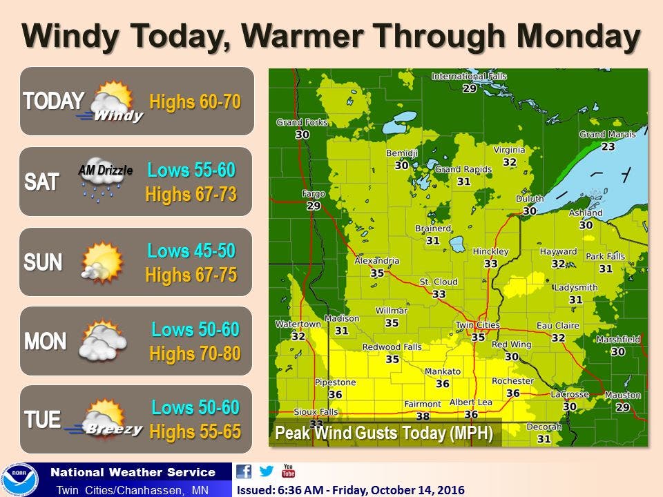 Expect slightly warmer temperatures this weekend as sunny skies and highs in the 70s make their way over the Twin Cities metro.