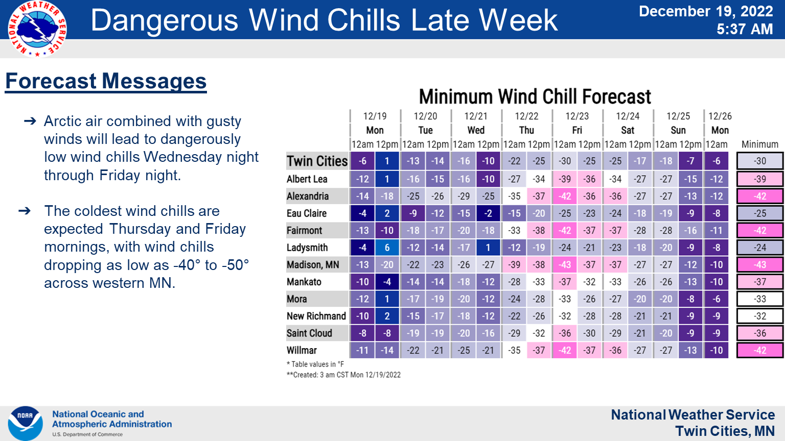 Here's the full NWS forecast from the Minneapolis-St. Paul Airport: